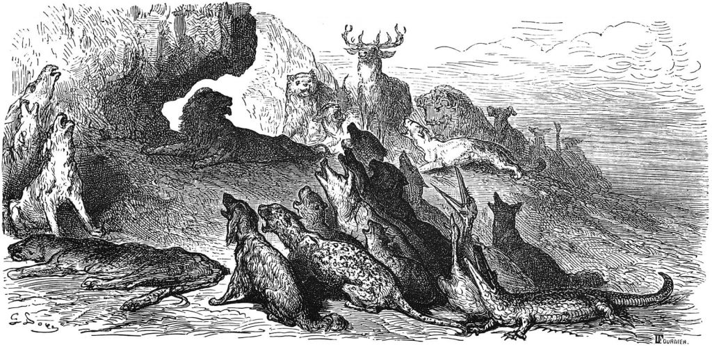 Ainsi se crée un peuple de courtisans, qui annonce celui que dépeindra La Fontaine dans « Les obsèques de la lionne », dans le livre VIII de ses Fables, paru en 1678.