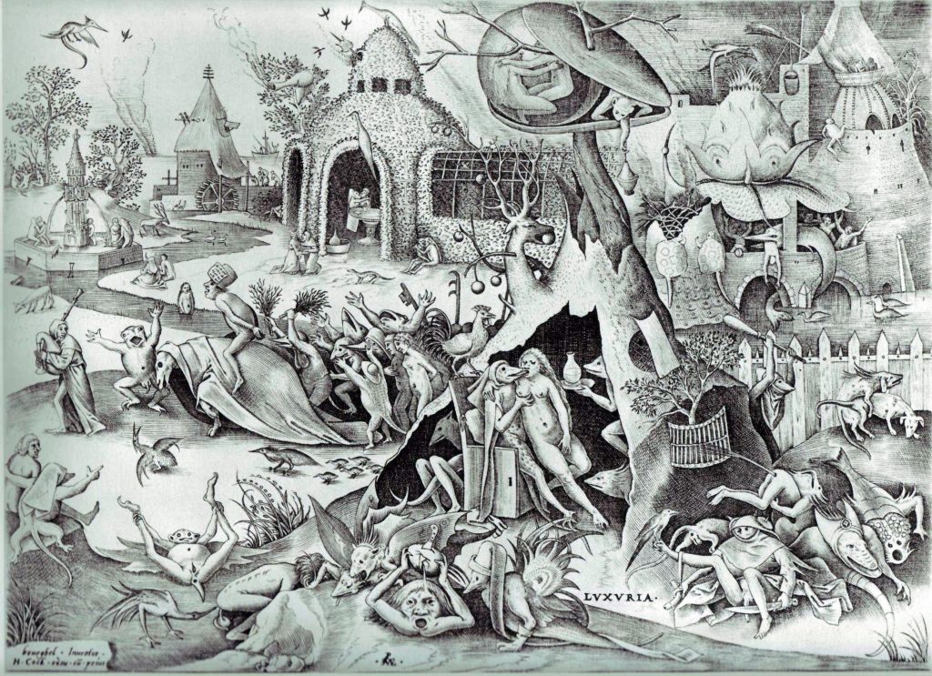 Pieter Brueghel l’Ancien, Les sept Péchés capitaux : la luxure, 1558. Gravure, 22,4 x 29,4